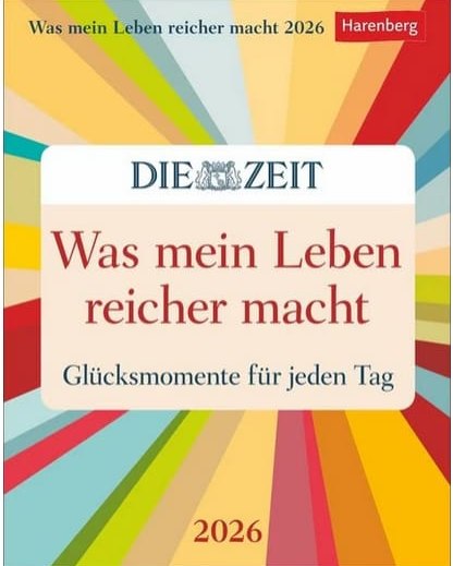 Der Kalender, der hier bestellt werden kann, steht 2026 unter dem Motto: „Was mein Leben reicher macht. Glücksmomente für jeden Tag“.